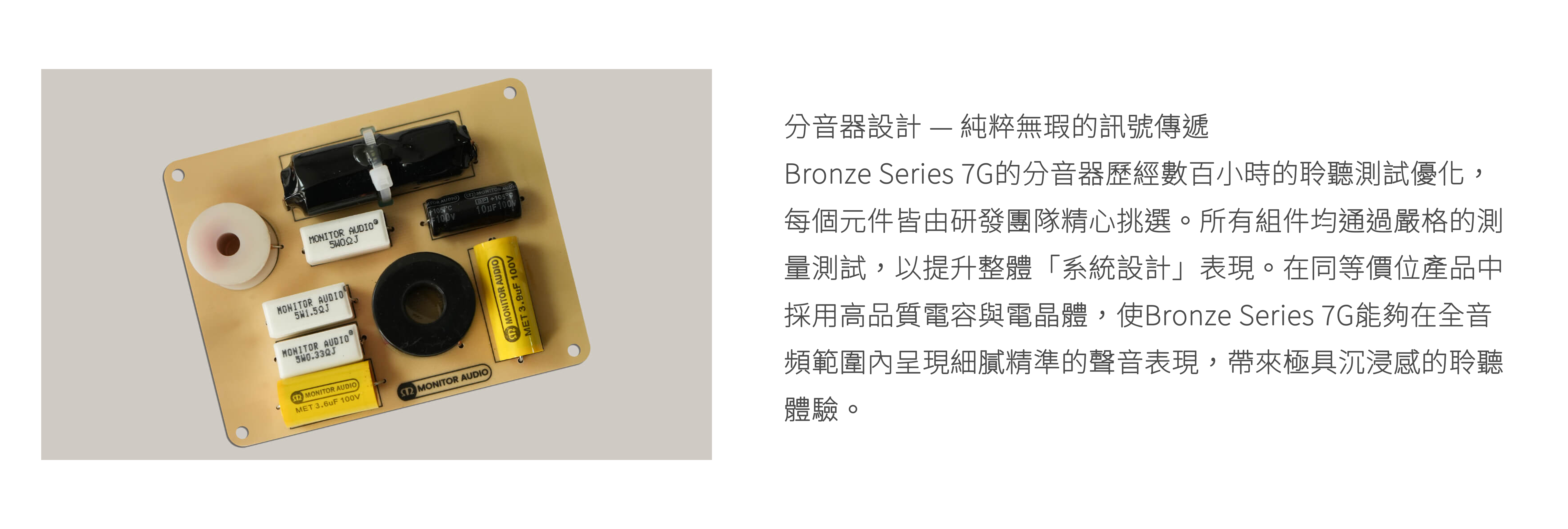 「Bronze 300 7G 不會模糊邊緣或抹去細節;它將紮實與寬闊的音場完整呈現,