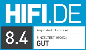 「雖然這款小巧的 Argon Audio Fenris A4 並非為極高音量設計,但若您需要在小空間中獲得豐富的聲音表現,它絕對是不二之選。價格實惠卻擁有近乎發燒級的音質表現,性價比驚人。我們毫不猶豫地推薦 Fenris A4。」 – 德國音響評測網站 HIFI.DE 產品評分標章