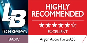Argon Audio Forte A55 是一款極具性價比的揚聲器。它延續了小弟 Forte A4 所具備的優質音效,只不過這次是為更大的客廳而設計,並具備更深沉的低音以及更高的音壓表現。 – L&B Tech Reviews(Lyd & Bilde)Highly Recommended(強力推薦)